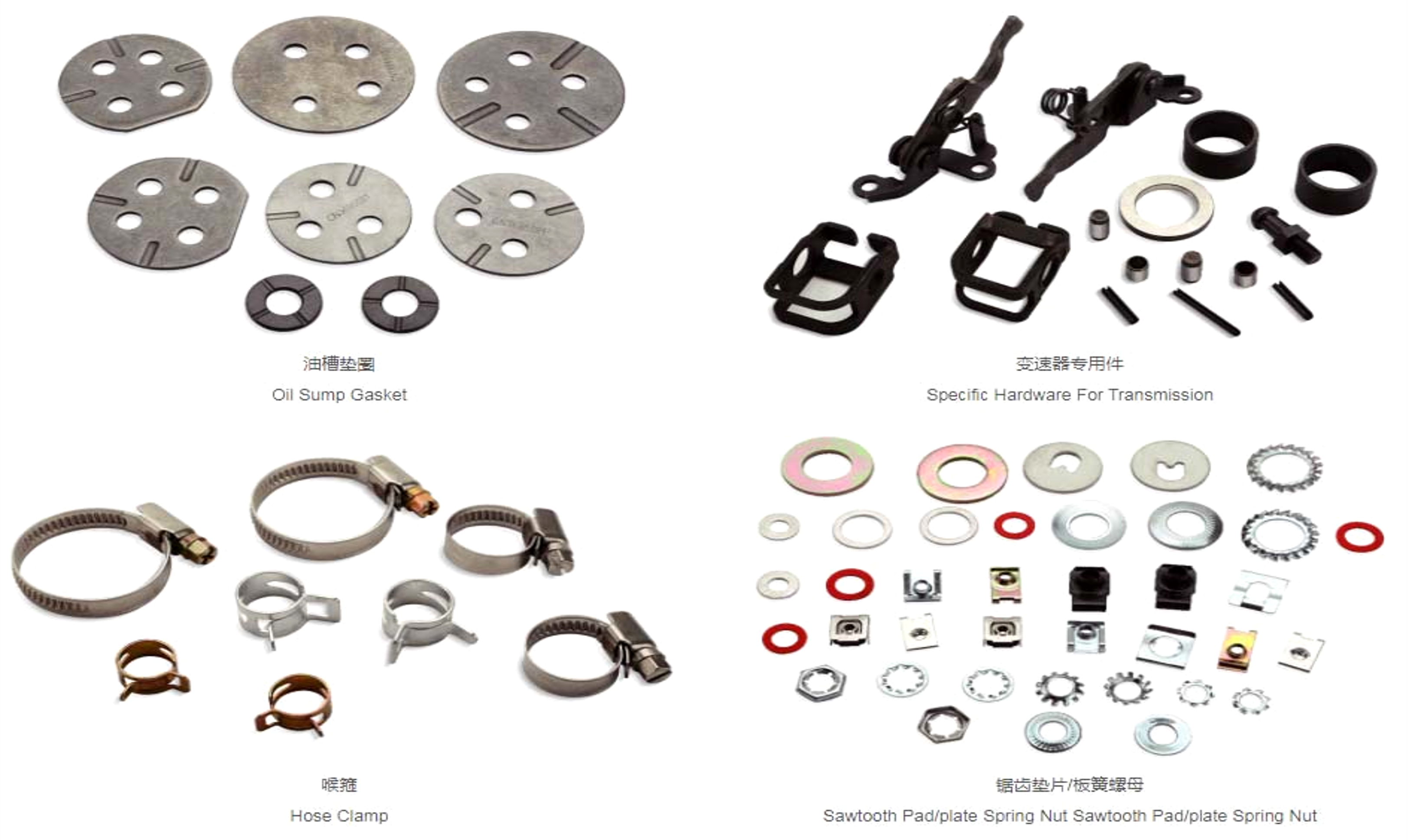 作为专业的机械部件制造商,公司专注于汽车、工程机械设备配套产品的研发、制造与销售,核心产品涵盖紧固件、变速箱冲压件及各类汽车零部件,具体包括螺栓、螺母、挡圈、套类、支架类、信号盘、前盖等几大系列数千种型号,可满足不同领域客户的个性化需求。