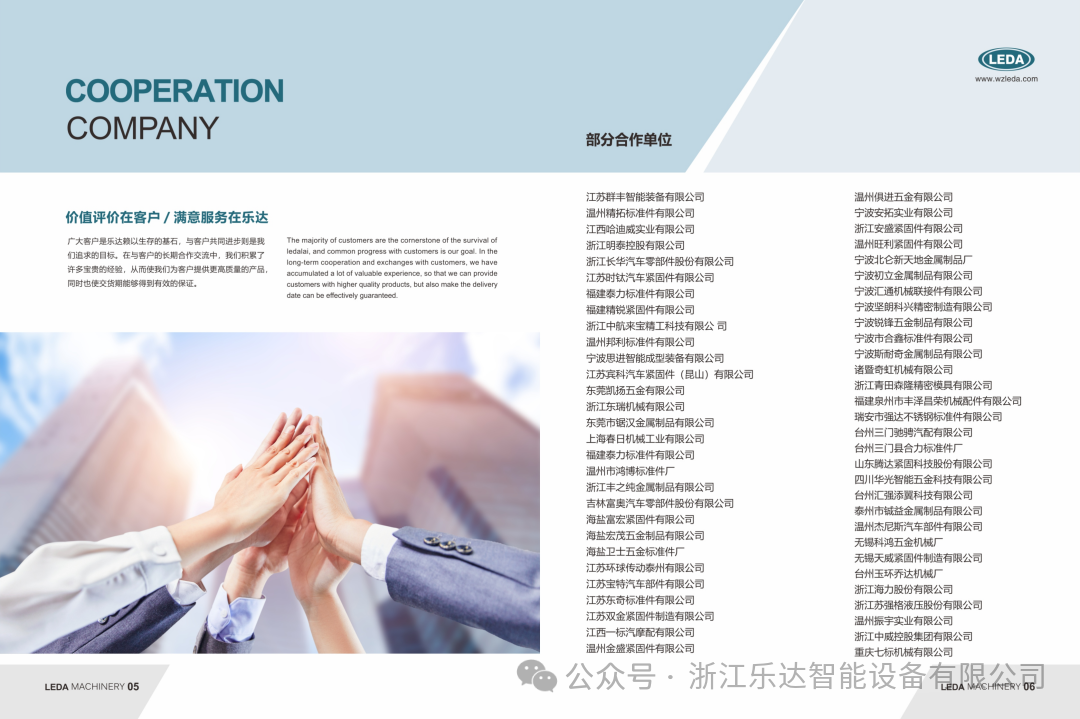 温州乐达成立于1998年,始创者从事五金标准件的生产及其机械配件的制作二十余年,对螺母成型机及周边配件制造有着丰富的经验。本厂始修以科学求发展,以质量保生存;以一流的服务。合理的价格为顾客所信赖。我们始终不谕的遵循“开拓奋进,创新、求实”的精神,热忱欢迎国内外客户来电来涵,洽谈业务。