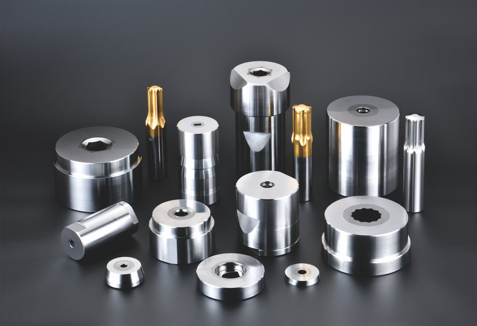我们的产品包括强束模、组合模、三角模、剪刀、线模、顶针冲棒等生产螺丝、螺栓所需的硬质合金成型模具及辅件。目前产品已广泛运用于生产汽车螺栓、手机电子螺丝、航空螺丝、家居螺丝、电器触点等。